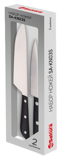 Набор ножей нерж. 2шт (поварской, универсальный), клепаные пласт. ручки "Sakura"