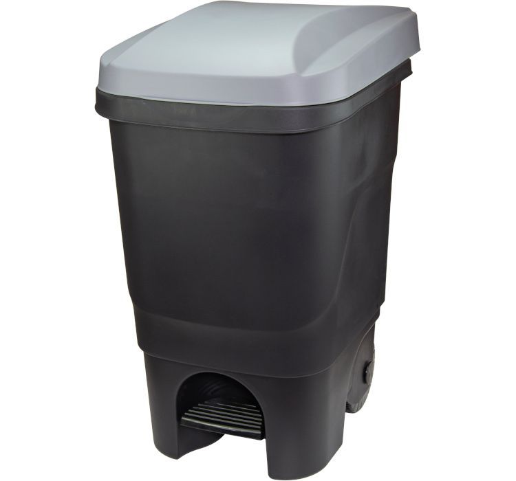 Контейнер для мусора пласт. 60л (390*500*690мм), серая пласт. крышка, на колесах, черный
