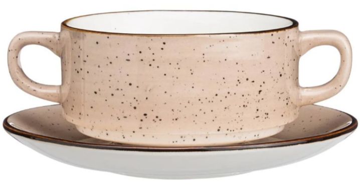 Бульонница 250мл с блюдцем фарфор bronco "Nature"бежевый