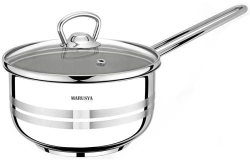 Кастрюля нерж. 1,2л (14см), ст. крышка, прутковая нерж. ручка, индукция "MARUSYA"