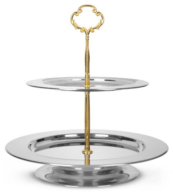 Фруктовница (этажерка) нерж. 26*24см, двухярусная, ручка под золото
