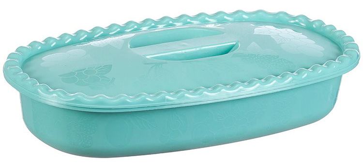 Миска пласт. 1,5л, прямоугольная, крышка с ручкой, декор фрукты "IDEA" аквамарин