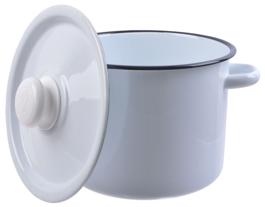 Кастрюля эм. 3,5л, эм. крышка с пласт. кнопкой, цилиндр светлая