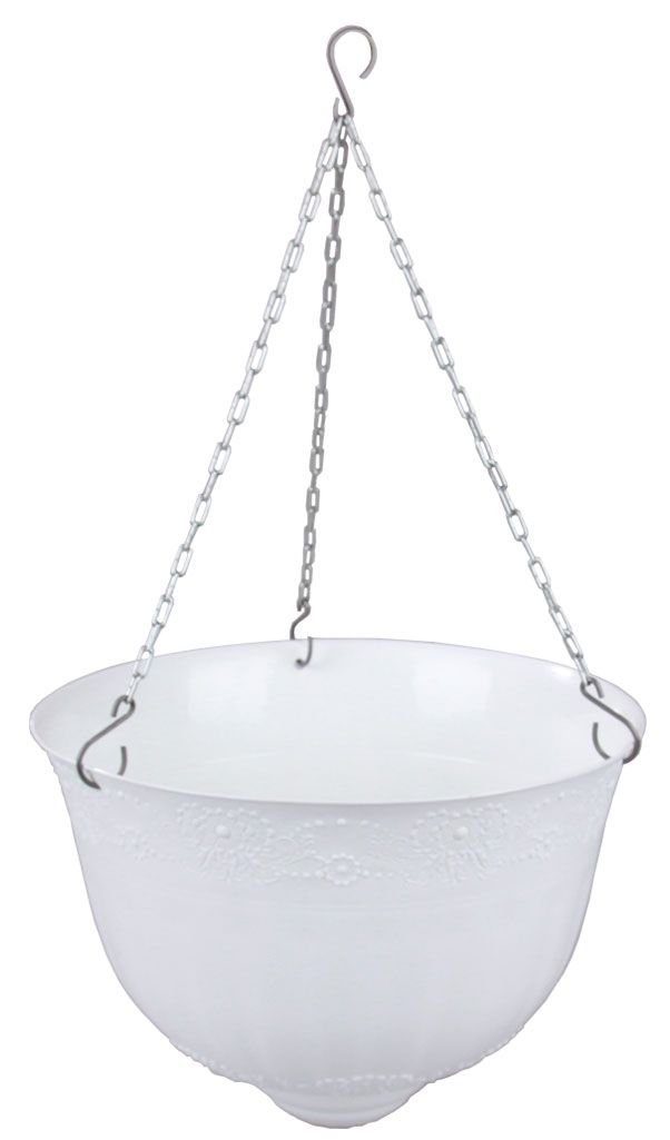 Кашпо пласт. 10л (330*330*620мм), подвесное на цепочках "Венеция" белое