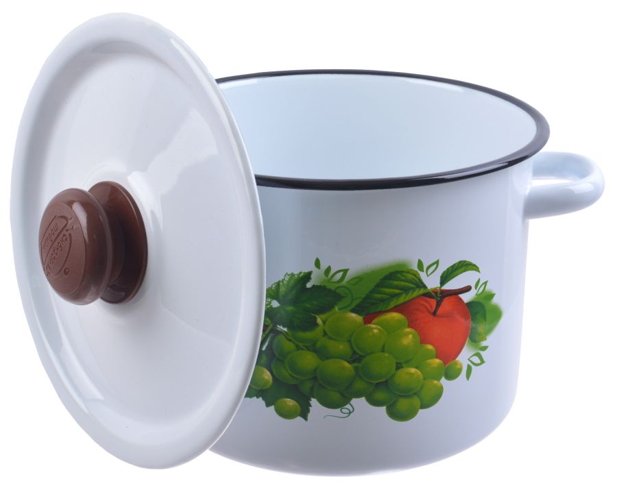 Кастрюля эм. 3,5л, эм. крышка с пласт. кнопкой, цилиндр, деколь микс, светлая