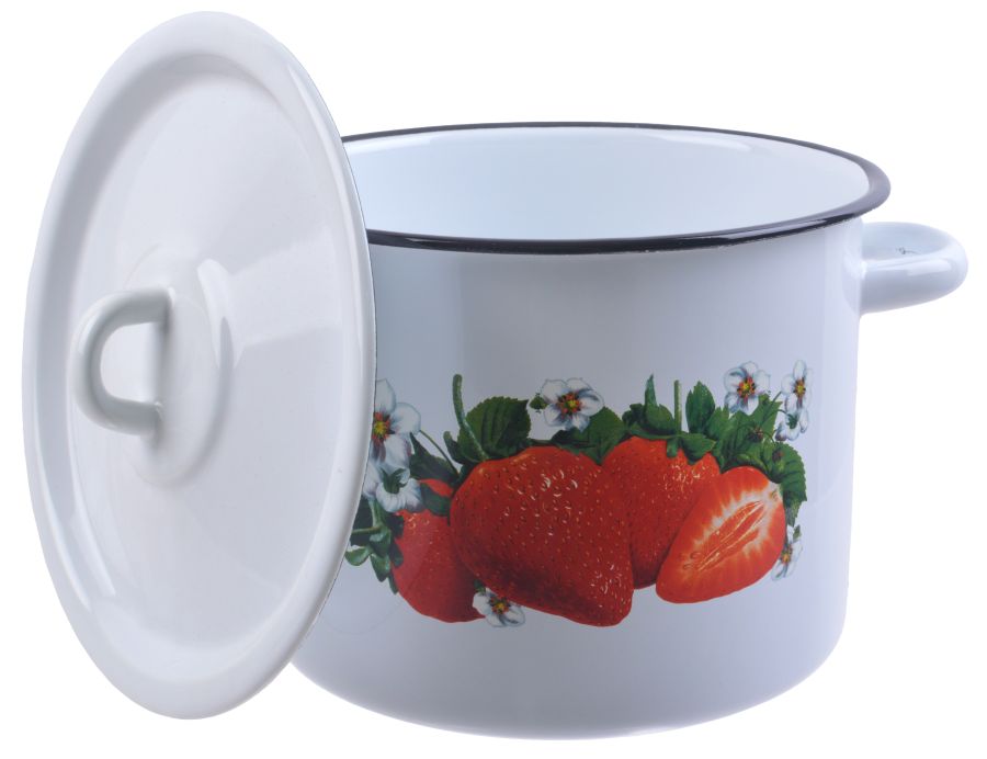 Кастрюля эм. 3,5л, эм. крышка с петлей, цилиндр деколь "Клубника садовая" светлая (4)