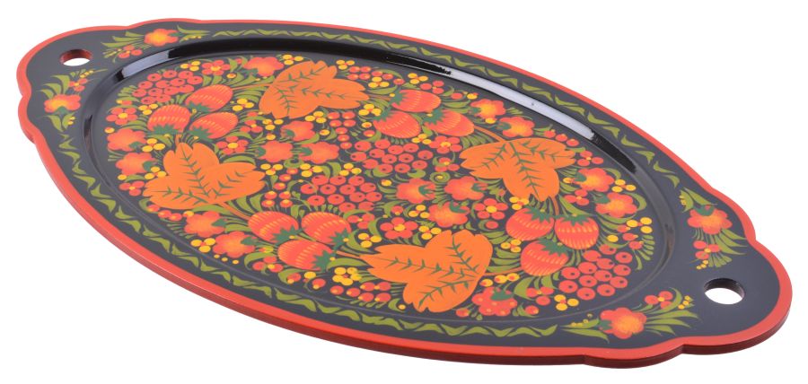 Поднос деревянный Хохлома 46*25см Керженский овальный @