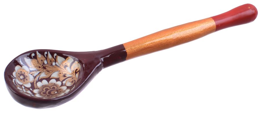 Ложка чайная деревянная Хохлома Золотая кудрина 15см, черпачок 3,5см@