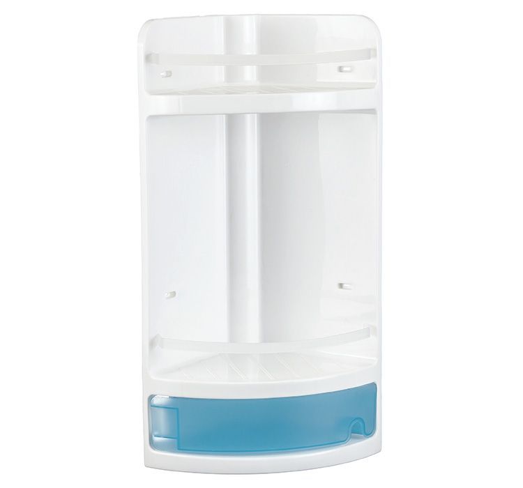 Полка для ванной пласт. 3-х ярусная (200*200*510мм), угловая, выдвижной отсек, бежевый мрамор