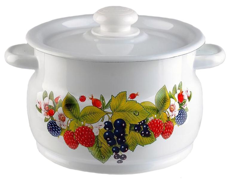 Кастрюля эм. 4л, эм. крышка с пласт. кнопкой, сфера, деколь микс, белая (4)
