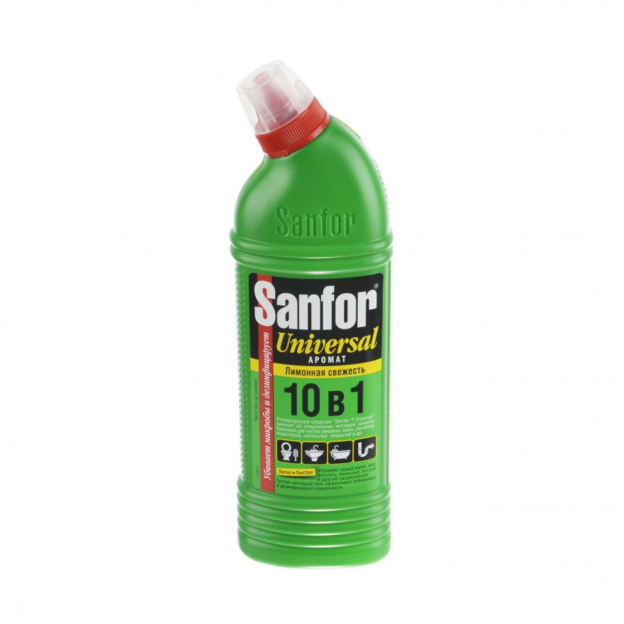 Гель для разных поверхностей 750мл с хлором лимонная свежесть универс. 10в1 SANFOR