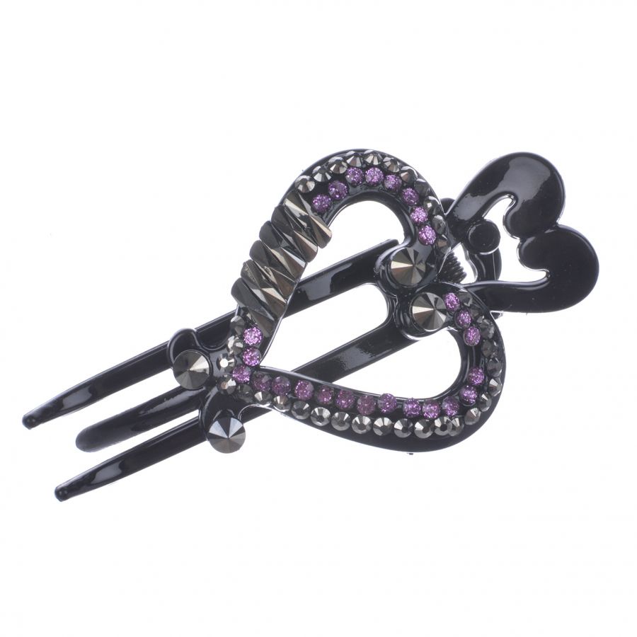 Зажим-Утка Сердце черно-бел стразы 1шт@